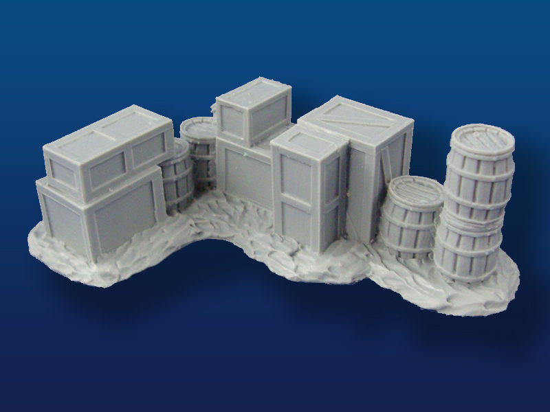 Description: 28mm Field Fortifications #2 Barrels & Crates, Corner Scale: 28mm